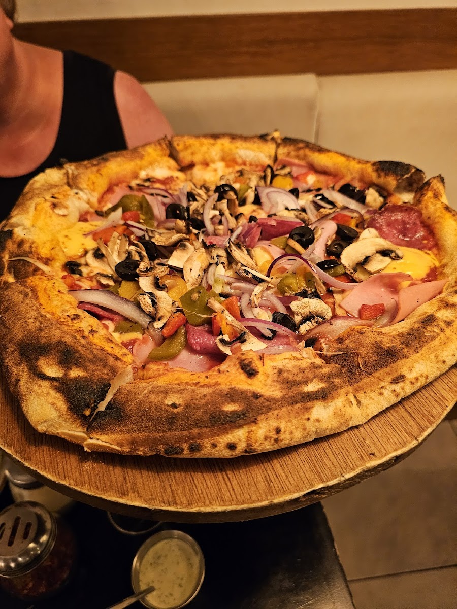 They make a great Pie, I’m from NY and enjoyed their pizza and salad ( salad was a little small for price, also needed a bigger plate) Drinks are top notch. Margarita and Mojito.
